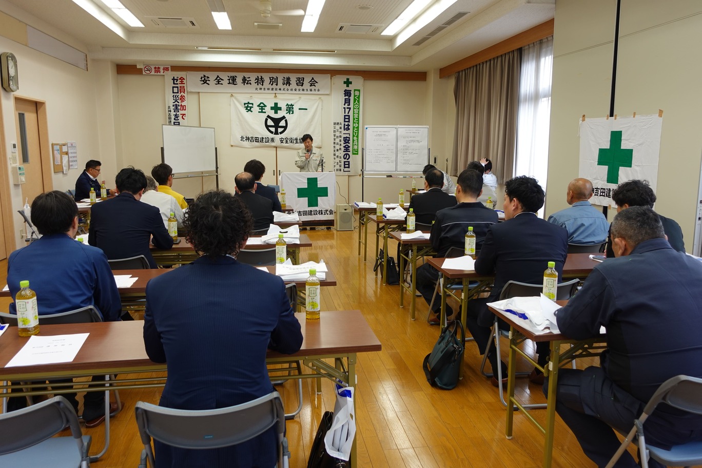 また、コマツカスタマーサポート㈱藤本様、繁本様より、労働安全講習会をしていただき、普段の作業の影に隠れている危険を参加者で共有し、現場の安全意識向上に勤めました。